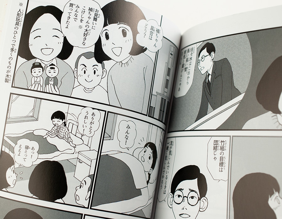 本書は川野登美子さんの著書「原爆の子の像 6年竹組の仲間たち The Children’s Peace Monument」を親しみやすいマンガにし、幅広い年齢の方に読んでいただけるものとなっています。やさしいタッチの絵柄で描かれる物語は、小さなお子様にも読んでいただける内容となっています。