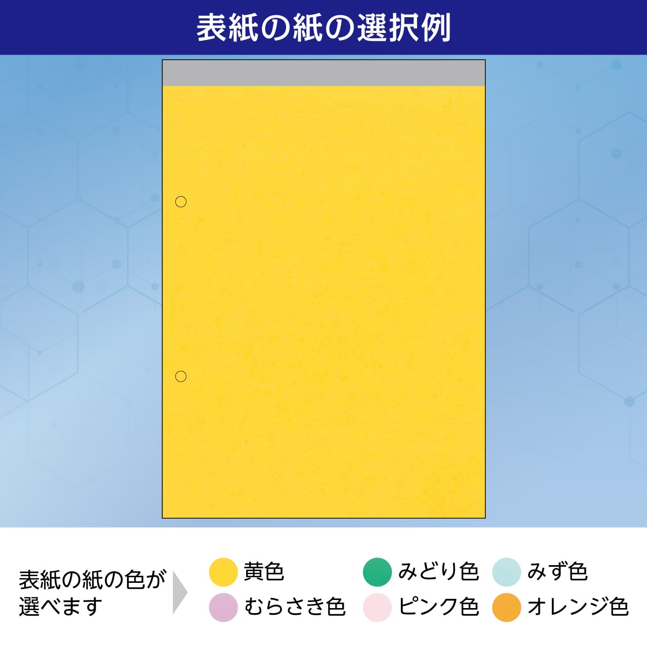表紙は 黄色・みどり色・みず色・むらさき色・ピンク色・オレンジ色・白色 の7色から選択可能。会社のイメージに合わせてお選びいただけます。