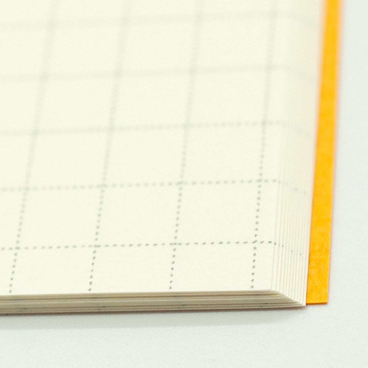 左ページが無地、右ページが方眼のユニークなレイアウトで、アイデアメモ・スケッチ・会議ノートにもぴったりな中綴じノートです。
