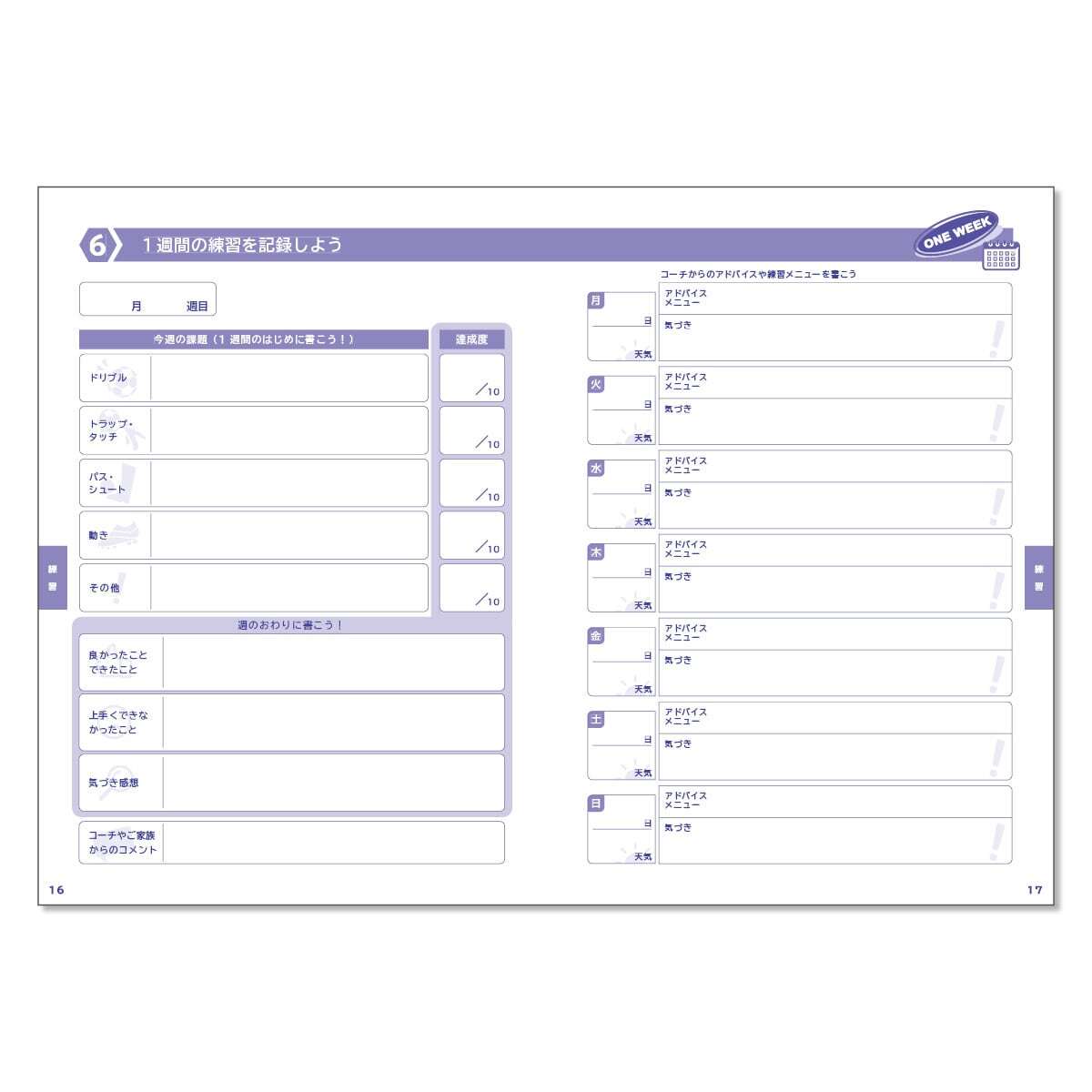 ・自由ページ(見開き2ページ):好きな選手の写真を貼ったり、欲しいシューズをメモしたり、合宿や遠征の予定や持っていくモノをメモったり、W杯やリーグ戦の予想をしたり・・・etc、自由な発想でご使用できます。