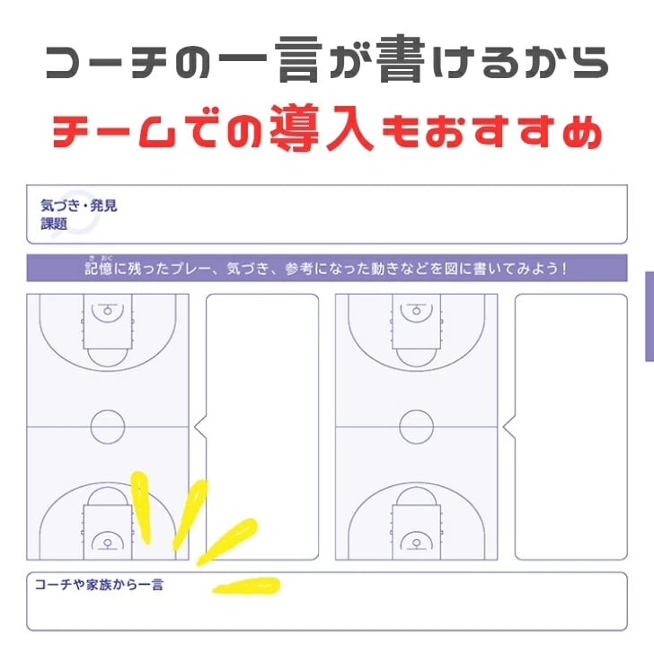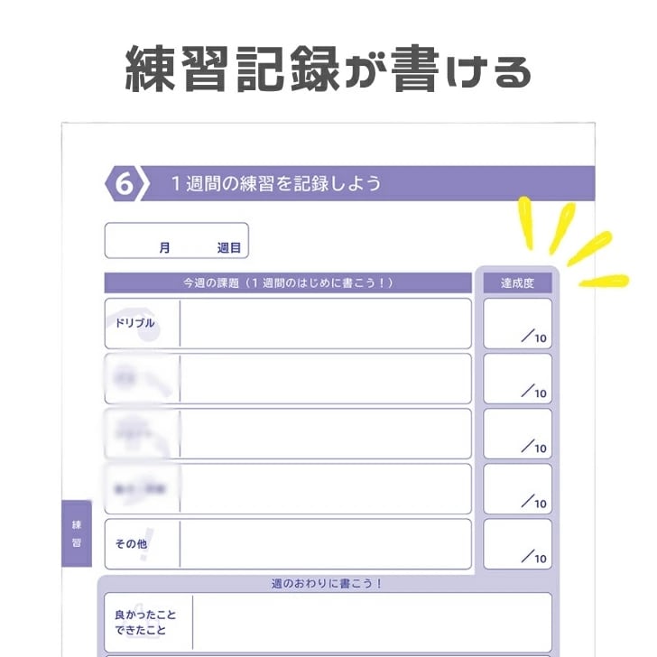 1日の練習後に課題や振り返りを毎回1ページ分書いていくのは難しいですよね。練習後は夜遅くなったり、書く内容も1ページ分を考えたり、1ページ分も無かったりすると、書く気力をなくし書くことが辛くなって続けていくことができなくなります。