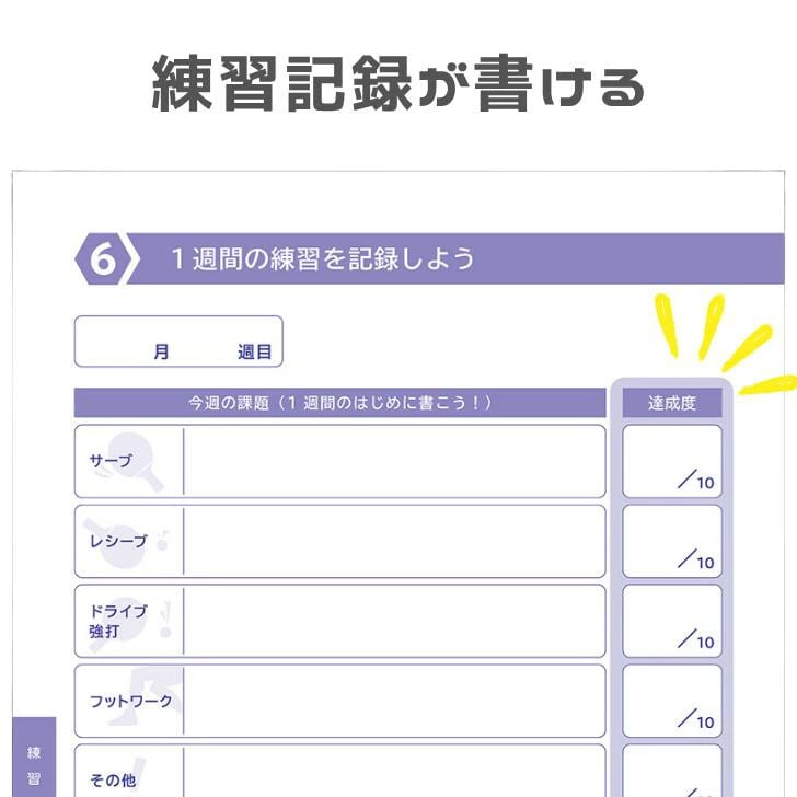 同じような卓球ノートはありますが、他のノートは対象の年齢層が高かったり、ノートサイズが小さかったり、練習だけ・試合だけの記録しかできなかったりと、使うのが難しいと感じた事はありませんか?