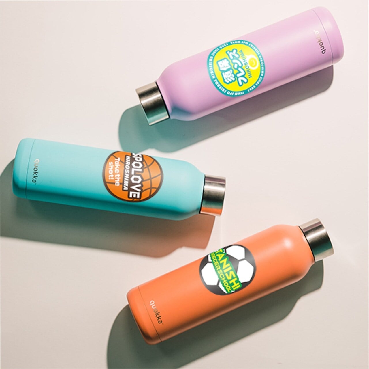 特注ステッカーサービス —— 直径8cmのステッカーを、チーム名やロゴ入りで10枚セットから制作します。