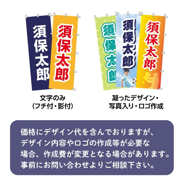 ※価格にデザイン代を含んでおりますが、デザイン内容やロゴの作成等が必要な場合、のぼりの作成費が変更となる場合があります。事前にお問い合わせよりご相談下さい。