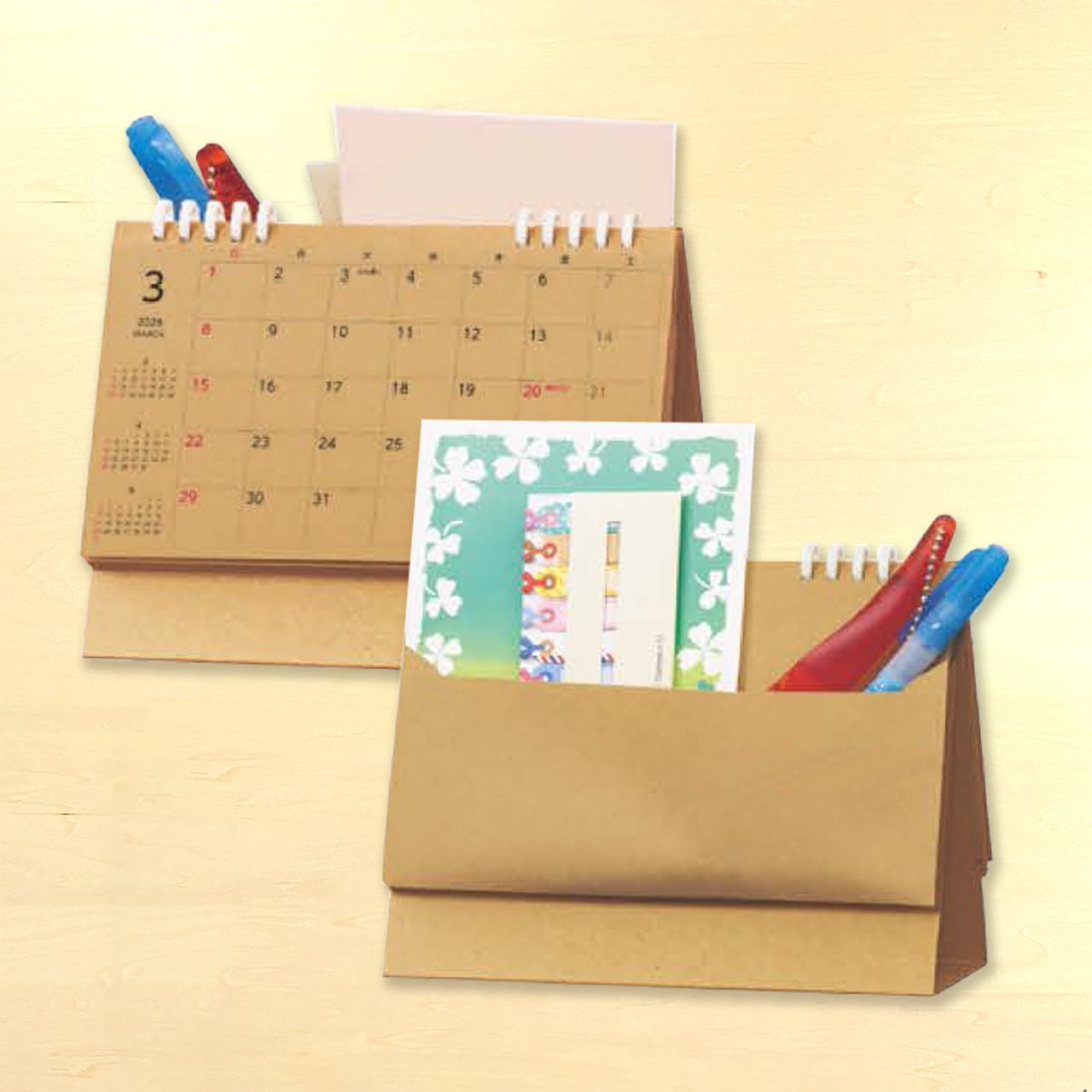 カレンダー付きペン立てとしても活用でき、デスクまわりをすっきり整理できます。