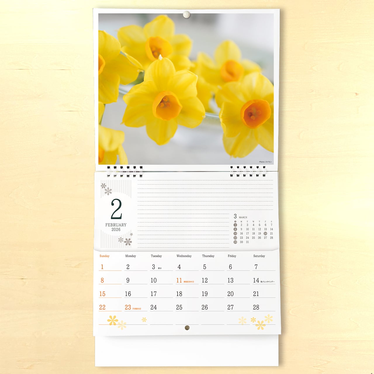 美しい花の写真が毎月入れ替わり、リビングやオフィス、玄関などどんな空間にも自然と馴染みます。見るたびに心が和むデザインで、日々の予定管理がぐっと楽しくなる一冊。